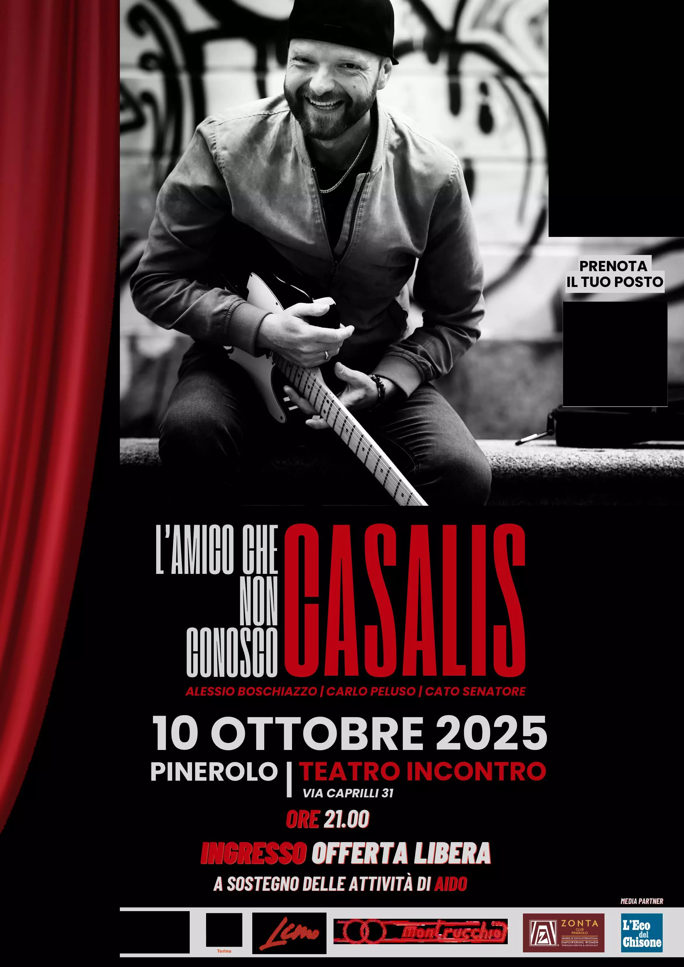 Protagonista della serata sarà il cantautore Alessandro Casalis, accompagnato da Cato Senatore (basso), Carlo Peluso (piano e tastiere) e Alessio Boschiazzo (batteria). Il concerto/storytelling trae origine da una vicenda personale: nel 2022 Casalis ha affrontato un trapianto di fegato e ha deciso di trasformare quella esperienza in musica e parole.