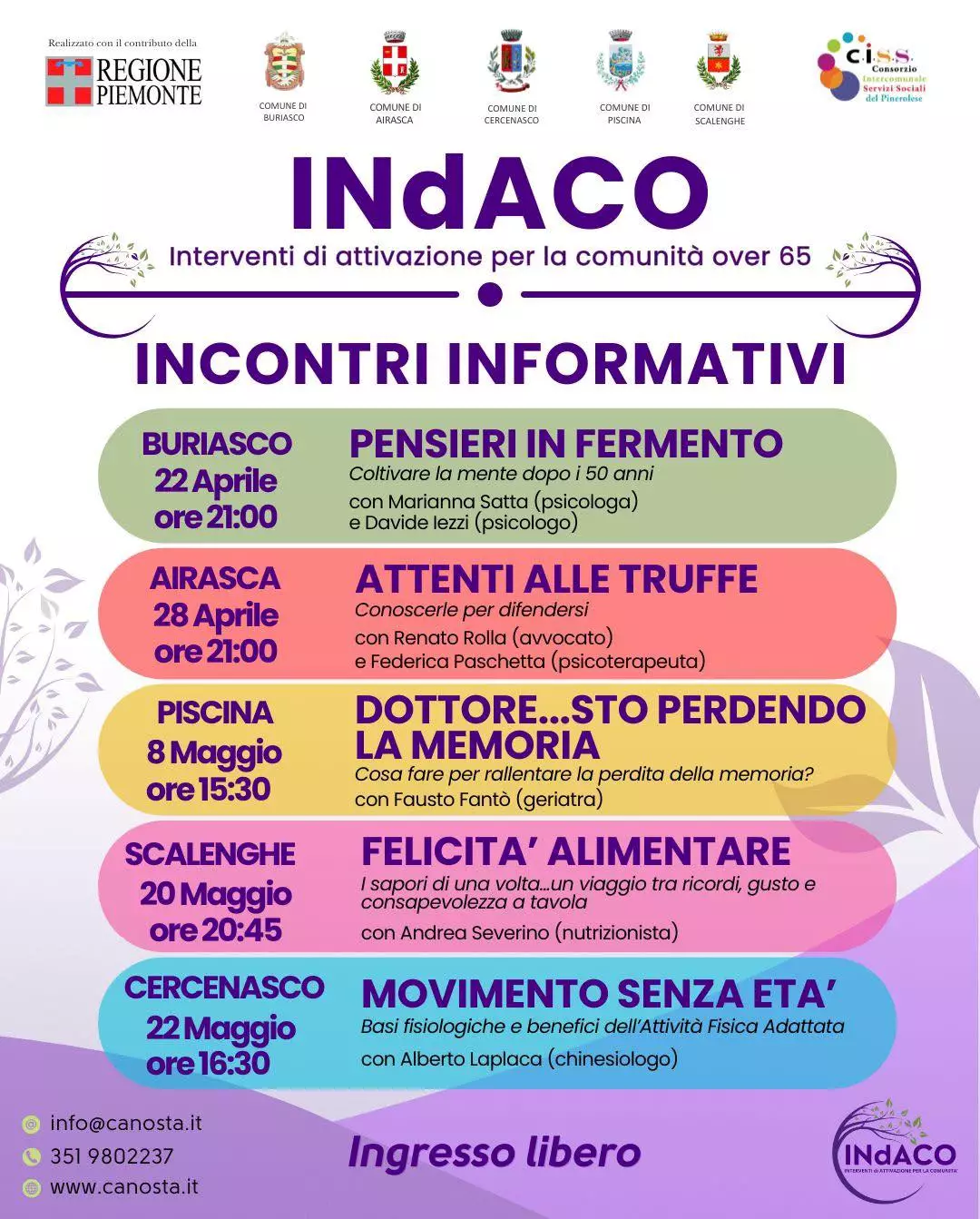 Progetto INDACO – Interventi di attivazione per la comunità è realizzato con il contributo della Regione Piemonte e dei comuni partner.